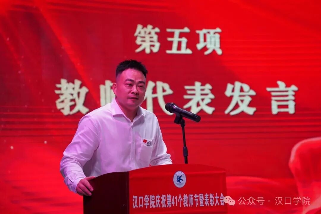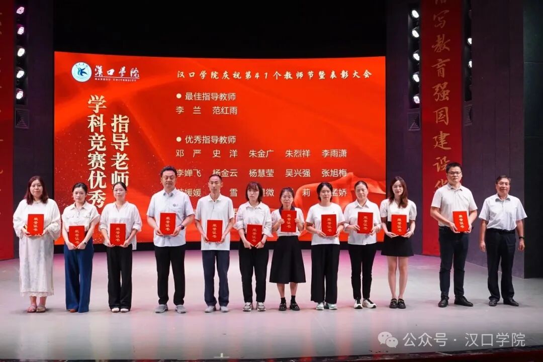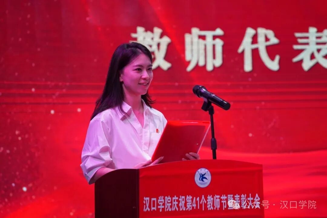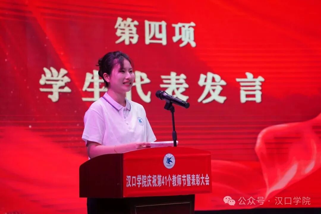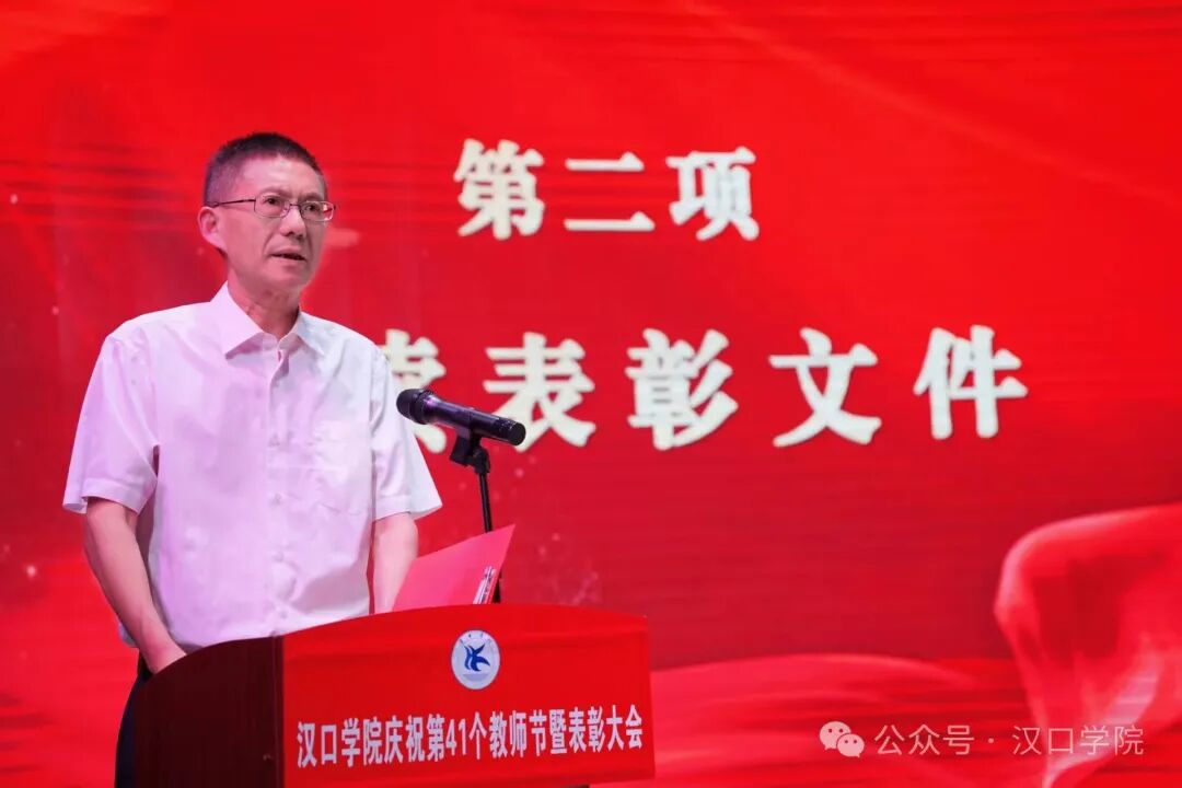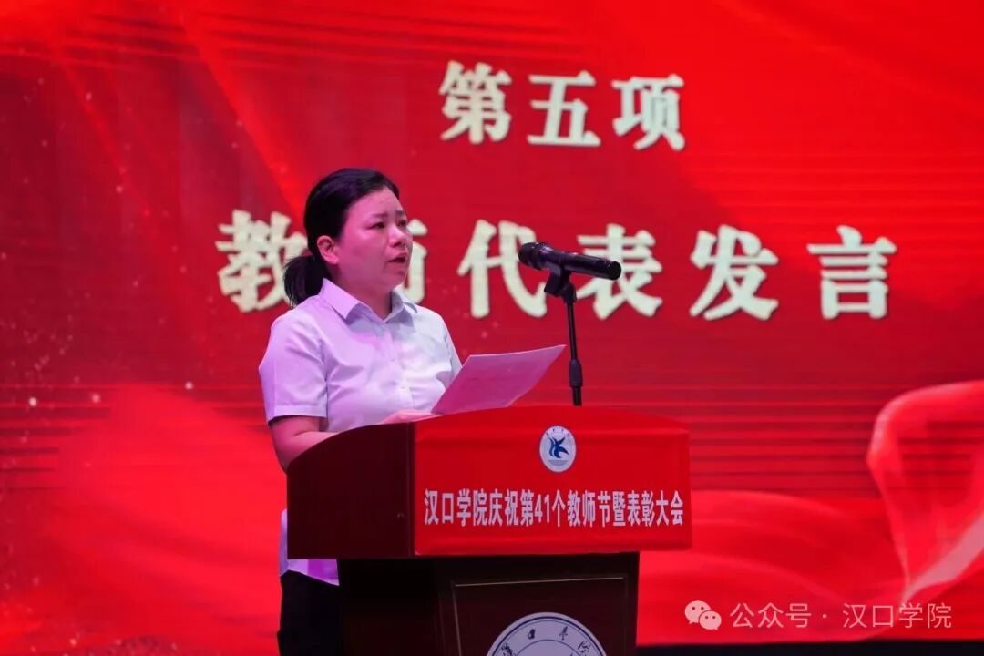 金秋九月,丹桂飘香;桃李芬芳,礼赞师者。9 月 9 日,汉口学院庆祝第41个教师节暨表彰大会在音乐厅隆重举办,本次大会主题是“以教育家精神铸魂强师,谱写教育强国建设华章”。 董事长、校长罗爱平教授,党委书记张宁以及全体校领导出席会议,全体教师参加会议。
