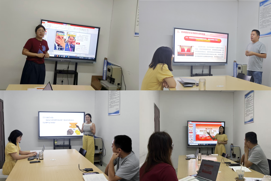 备课会聚焦课程核心内容,重点聚焦优化教学设计、创新教学方法、提升教学水平。牟兴、金耀宇、马洪晶、敖文文四位教师首先围绕导论、完整准确领会总体国家安全观、坚持以人民安全为宗旨、坚持以军事、科技、文化、社会安全为保障四个章节分别进行专题教学展示。四位教师的讲授各具特色,既紧扣教材重难点,又融入鲜活的时政素材,充分展现了对课程内容的深入理解与教学设计的创新思考。